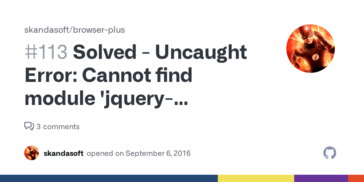 Cannot find module 'jquery' at module._resolvefilename (module.js:336:15). Unknown windows version thrown from: Cannot find module 'jquery' at module._resolvefilename (module.js:336:15). It was initially ported from my textmate bundle and then refactored to work better in the atom environment. Now to use that factory (either by importing the code from the cdn or if you have the npm module available locally) you would need something as the following: